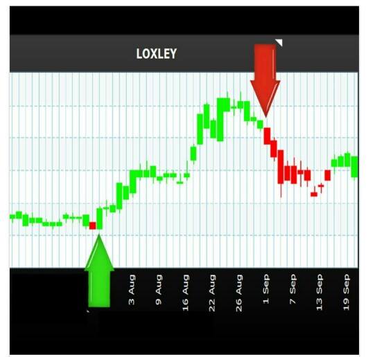 จุดเข้าคือลูกศรเขียวแรก จุดแดงคือให้ออกครับ อาจออกก่อนได้ถ้าอยาก take profit ไว แนะนำให้ผู้ลงทุนทุกท่านหาข้อมูลเรื่อง cutloss , money management เพิ่มเติมด้วยครับ