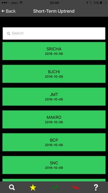 - App ไม่ได้มีหุ้นทุกตัว หุ้นที่สภาพคล่องต่ำมาก อาจทำให้สัญญาณการซื้อขายไม่แม่นยำ จึงมีเฉพาะ SET 100 และหุ้นที่อยู่นอก SET100 แต่มีสภาพคล่องดี